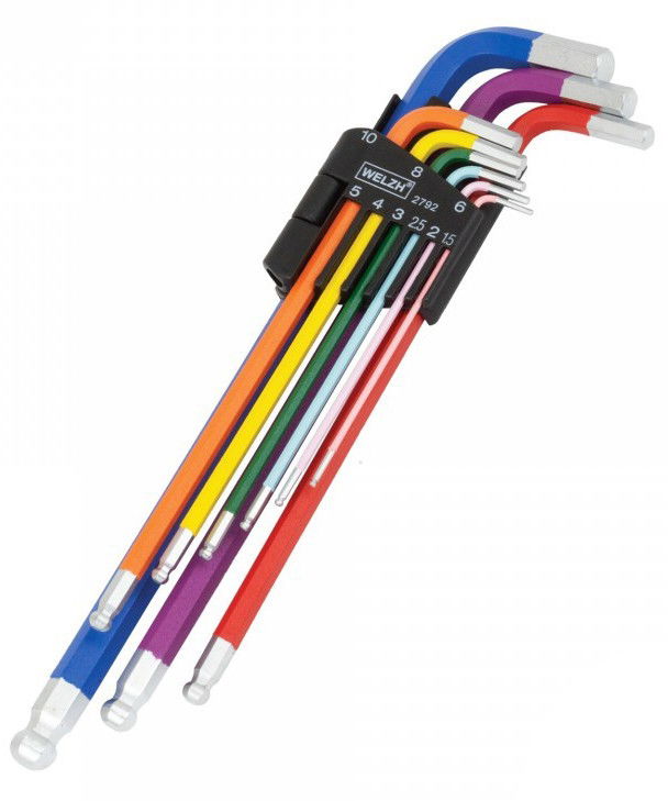 Welzh Werkzeug 2792-WW gömbvégű L-alakú imbuszkulcs készlet, extra hosszú, színkódolt, metrikus, 9 részes