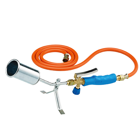- Különösen kézreálló, nagy teljesítményű felmelegítő- és leperzselőkészülék rövid csővel és 50 mm átmérőjű speciális égővel.